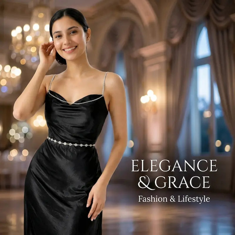 Stone Chain Shoulder Maxi Dress Silk - Party Wear Dress